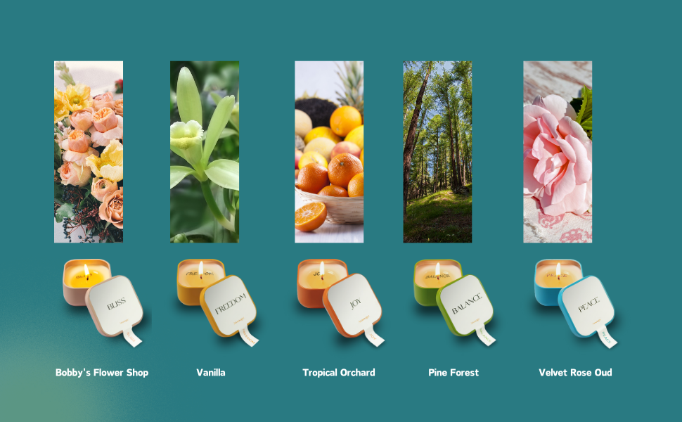 This 5 Pack Jar Candles Set is the ultimate gift for anyone who loves a good scent. With five unique scents - BOBBY'S FLOWER SHOP, VANILLA, TROPICAL ORCHARD, PINE FOREST, and VELET ROSE OUD - this set has something for everyone. Each candle is labeled with a representative emotional slogan, and by burning them you can ignite your deepest emotional fire.